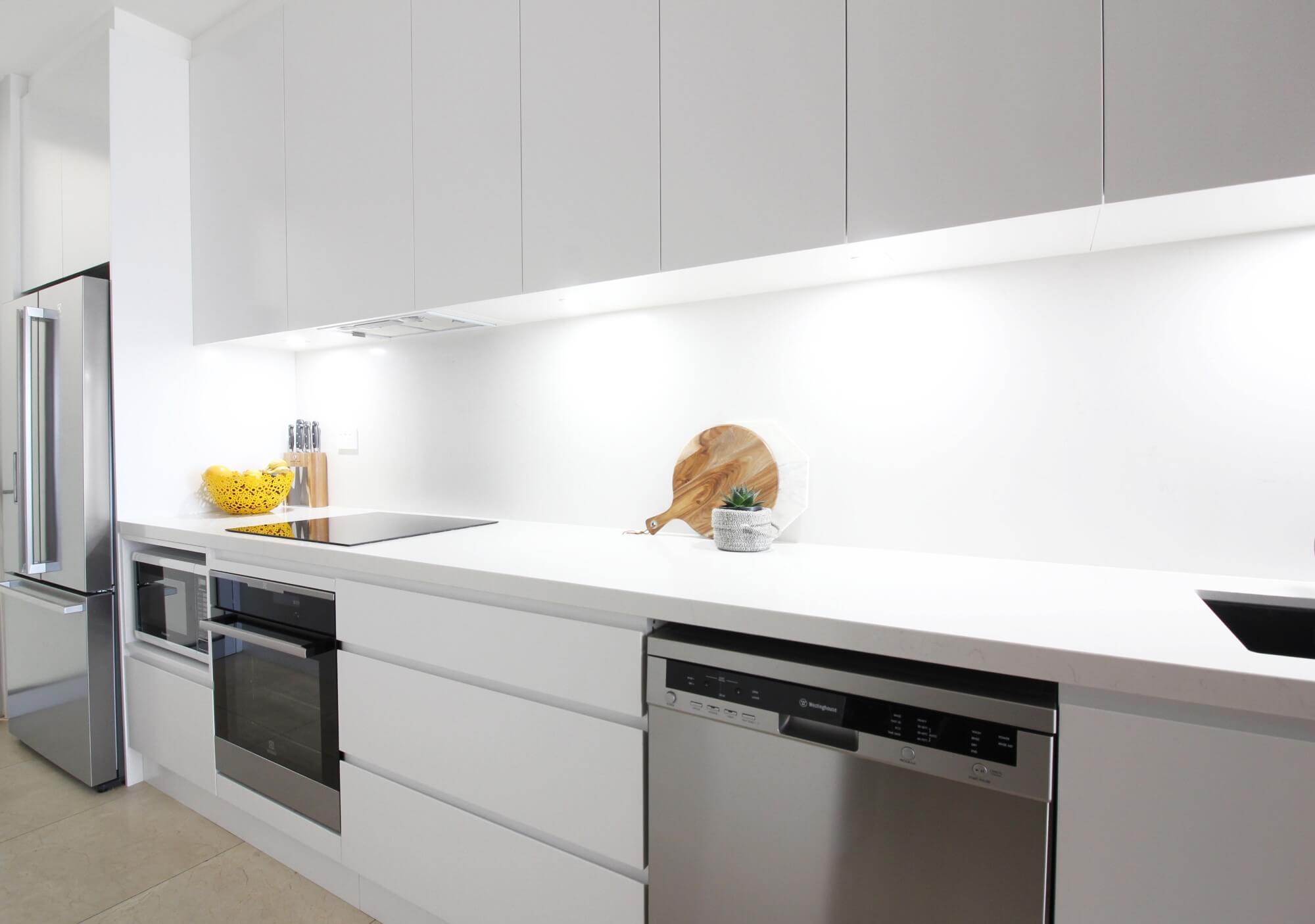 • Laminate benchtops, a functional and budget-friendly option available in a wide range of modern finishes